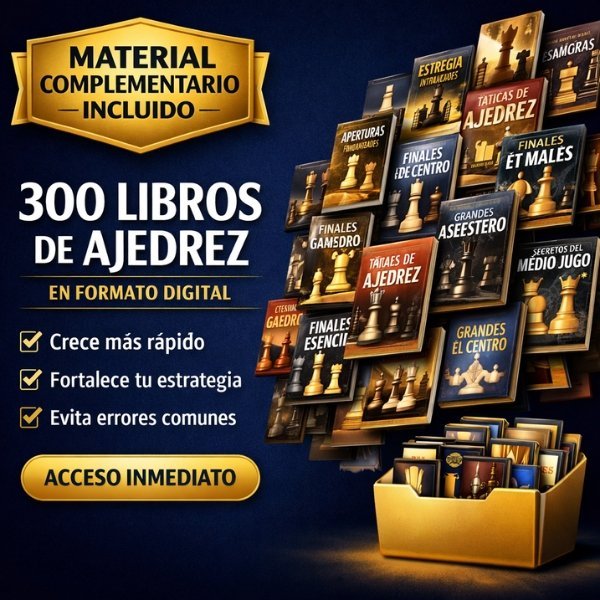 Además de la biblioteca de videos, tendrás acceso a 300 libros de ajedrez en formato digital, seleccionados como material de apoyo.